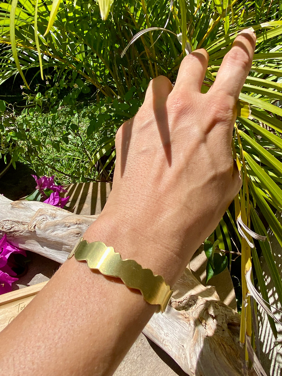 Bracelet « dentellé » - martelé & sablé - Laiton